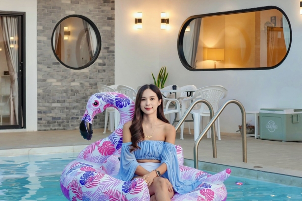 - สระว่ายน้ำแฟนซีเปลี่ยนสีได้ (มีจากุซซี่และสระเด็ก)