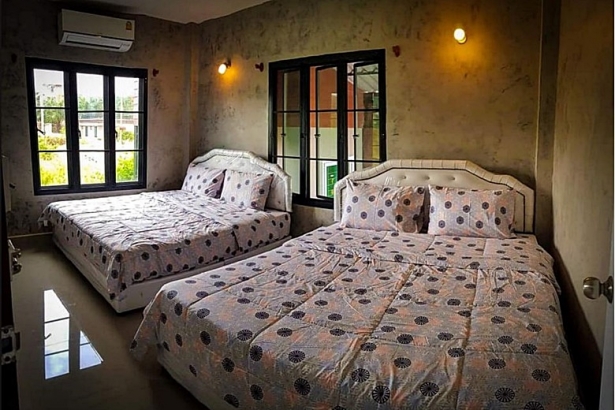 - บ้านพักมี 2 ห้องนอน 2 ห้องน้ำ มีเตียงคิง 3 เตียง โซฟาปรับนอนได้ 2 และ ที่นอนเสริม 2 ชุด เท่านั้น