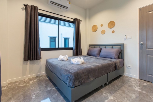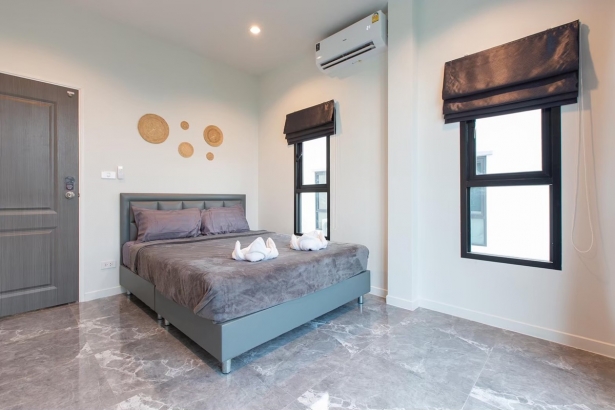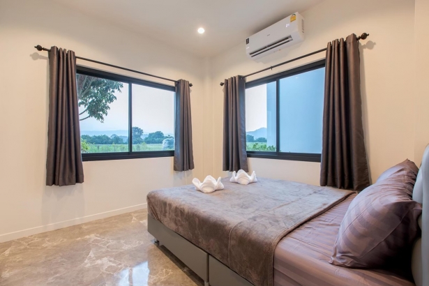- บ้านพักมีเตียง 5 ฟุต ห้องละ 1 เตียง