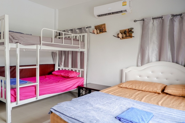 – ห้องที่ 1 : มีเตียง 5 ฟุต 1 เตียง และ เตียง 2 ชั้น 3 ฟุต 1 เตียง