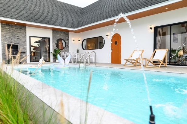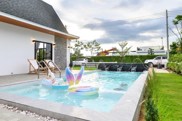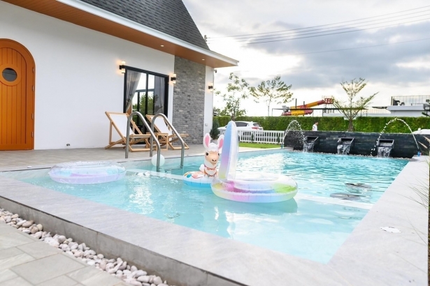 Kirin Pool Villa Khaoyai บ้านคิริน พูลวิลล่า เขาใหญ่ ตั้งอยู่ที่ ต.หมูสี มี 3 ห้องนอน 3 ห้องน้ำ 1 ห้องครัว บ้านสไตล์นอร์ดิกหลังคาสูง ตกแต่งสวยน่ารัก ขาวคลีน ถ่ายรูปสวยทุกมุม พักได้ 9 ท่าน เสริมได้ 3 ท่าน มีสระว่ายน้ำแฟนซีเปลี่ยนสีได้ คาราโอเกะ(ห้องโถงสูงโปร่ง ให้เครื่องเสียงทั้งในและนอกบ้
