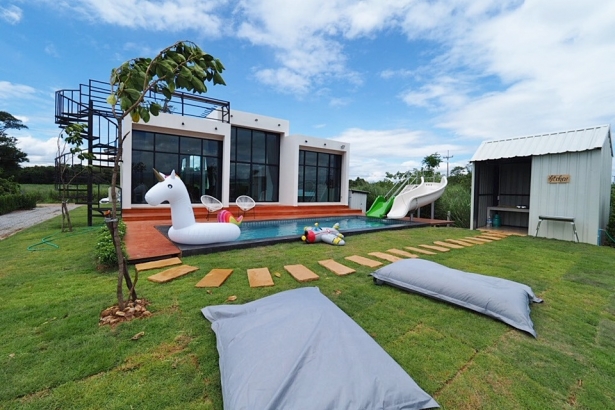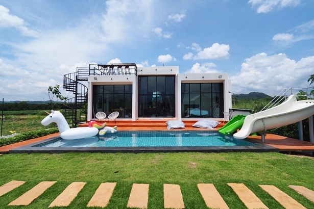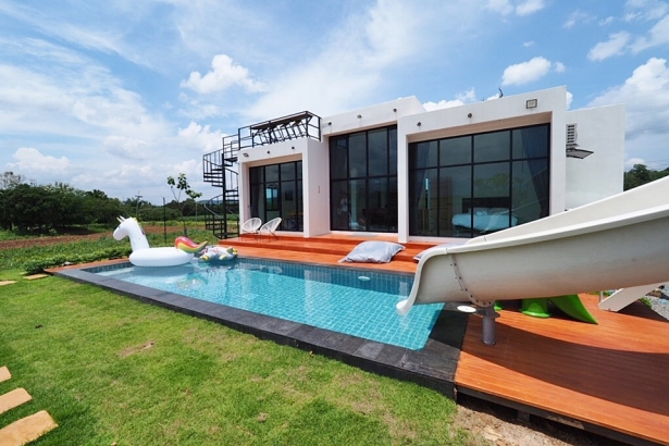 - สระว่ายน้ำส่วนตัวพร้อมสไลเดอร์ สุดมันส์