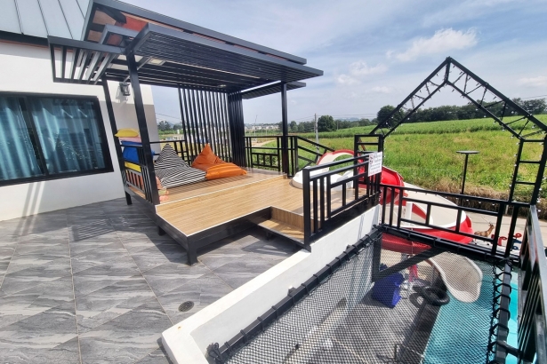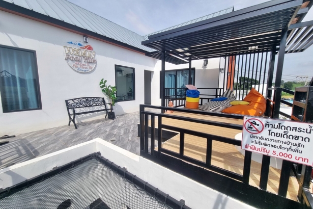 - สระว่ายน้ำส่วนตัวระบบเกลือ 4.5 x 7.5 เมตร ลึก 1.3 เมตร
