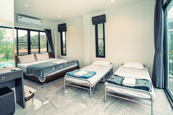 – ห้องที่ 3 มีเตียง 6 ฟุต 1 เตียง และ เตียงเสริม 3 ฟุต 3 เตียง, ฟูกนอน 3 ฟุต 3 อัน - สระว่ายน้ำส่วนตัว