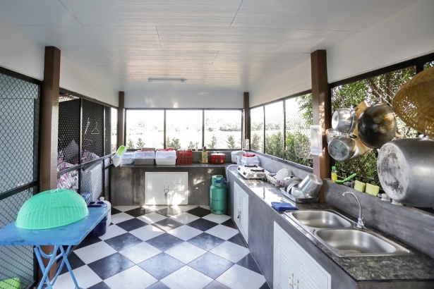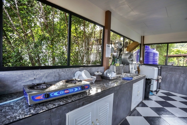 - อุปกรณ์ทำครัวครบ (จาน ชาม ถ้วย ช้อน ซ่อม แก้วน้ำ แก้วกาแฟ กระติกน้ำแข็ง หม้อ กะทะ มีด เขียง ทับพี ตะหลิว กระบวย ครก สาก)