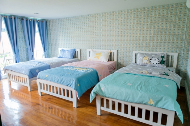 - บ้านพักมี เตียง 6 ฟุต 2 เตียง และ เตียง 3.5 ฟุต 3 เตียง