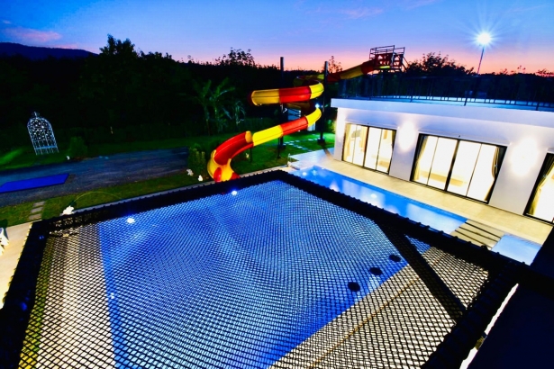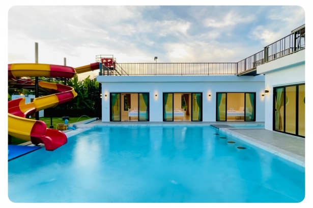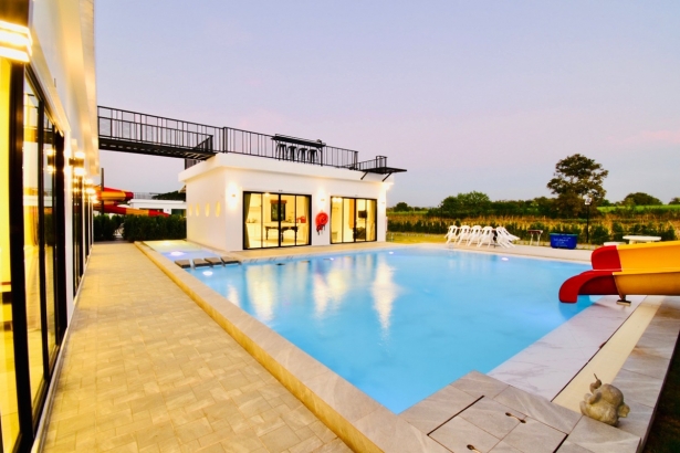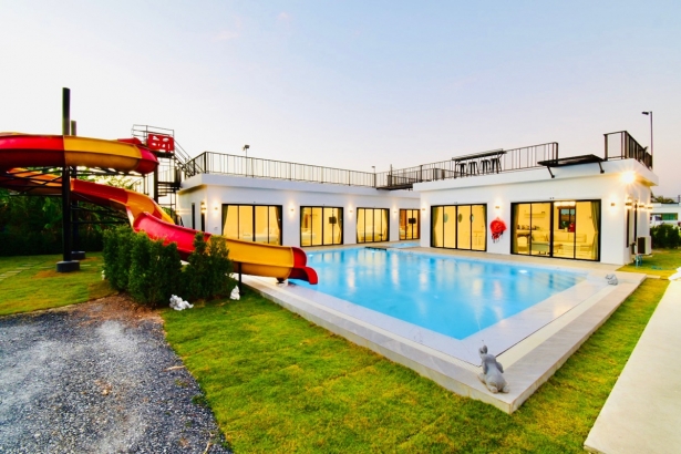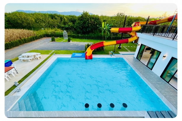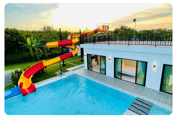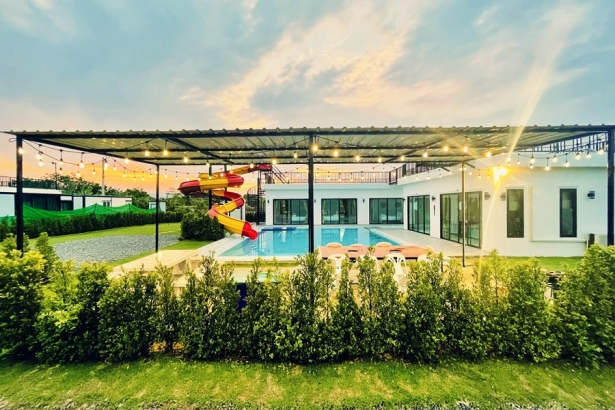 The Vista Khaoyai Pool Villa เดอะวิสต้า เขาใหญ่ พูลวิลล่า ที่พักเปิดใหม่ !! ตกแต่งสไตล์โมเดิร์น คุมโทนด้วยสีขาว ท่ามกลางธรรมชาติ บรรยากาศดี สระว่ายส่วนตัวขนาดใหญ่ พร้อมสไลเดอร์ยาว เกือบ 40 เมตร มี 2 โซน ใกล้กัน แต่ละโซนมี 4 ห้องนอน 5 ห้องน้ำ 1 ห้องโถง มีดาดฟ้าชมวิว เปลนอนตะข่าย เห็นวิว 360 องศา มุมถ่ายรูปเก๋ๆ หลายมุม รองรับลูกค้าได้ 12 ท่าน เสริมได้อีก 4 ท่าน ภายในห้องพักกว้าง เรียบหรู สบายตา ยังมีบริการ !! คาราโอเกะ ไฟเธค และ โต๊ะสนุ๊ก WiFi ฟรี สิ่งอำนวยความสะดวกมากมาย อุปกรณ์ครัว เตาปิ้งย่าง ที่จอดรถครบ