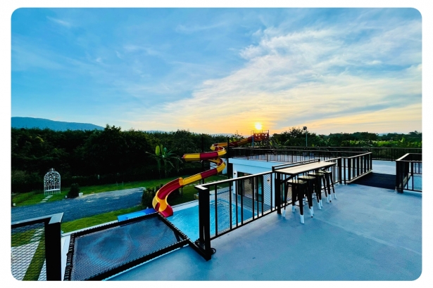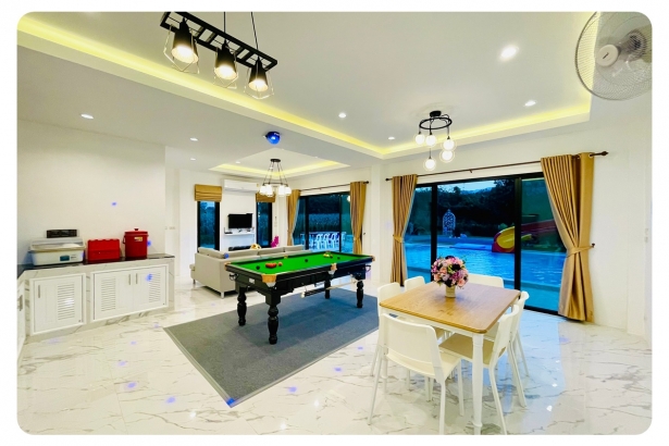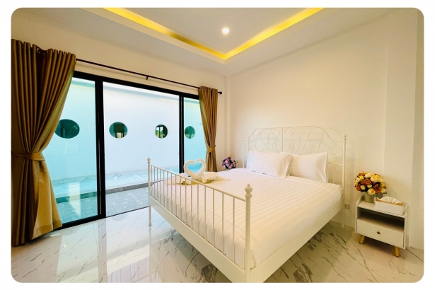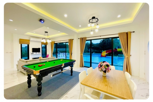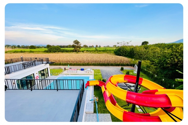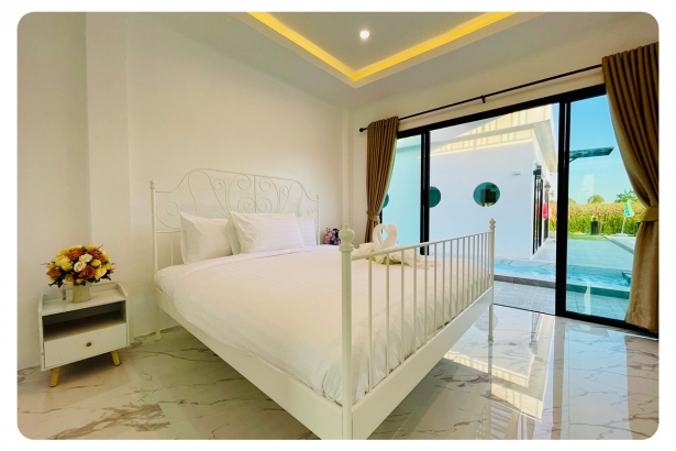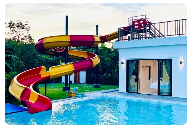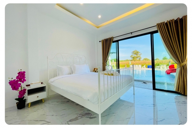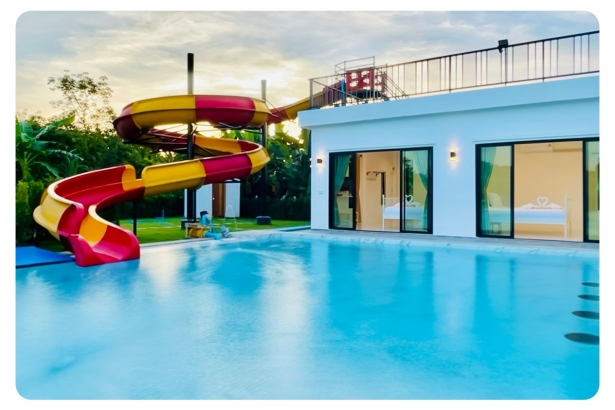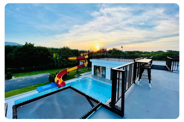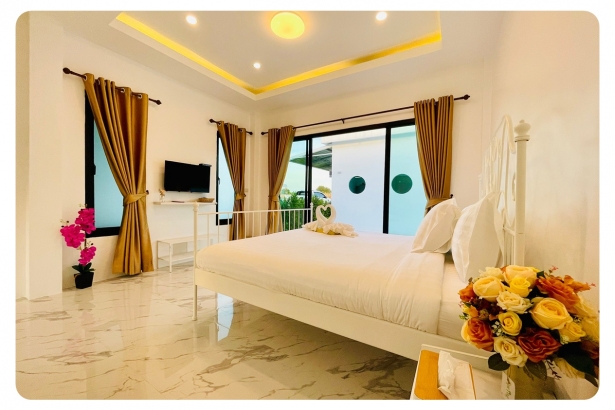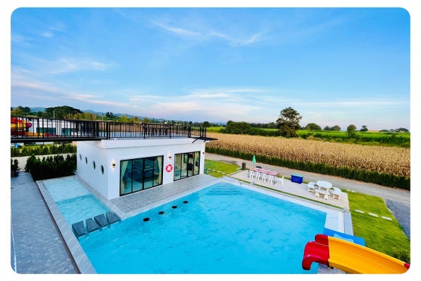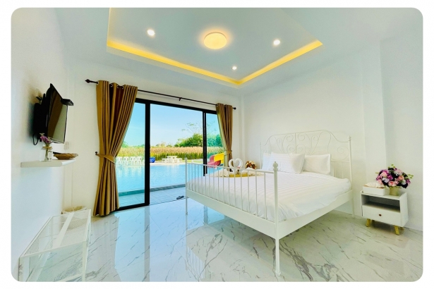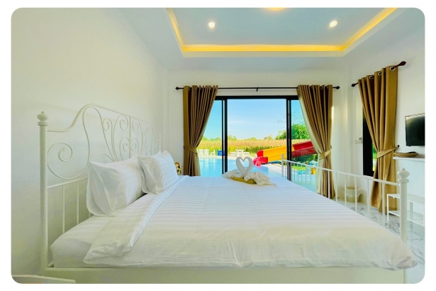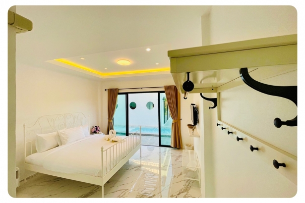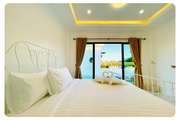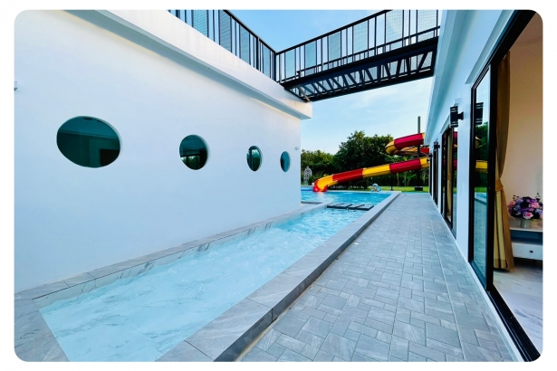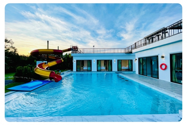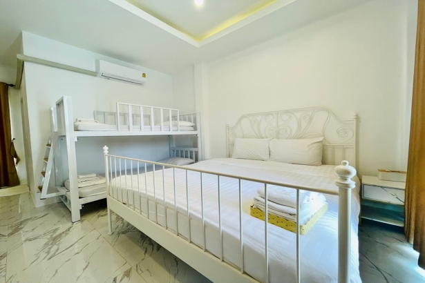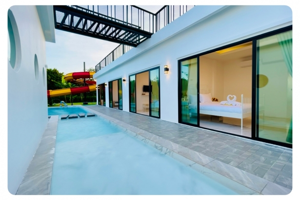 – ห้องที่ 4 มีเตียง 6 ฟุต 1 เตียง, เตียง 2 ชั้น 3 ฟุต 1 เตียง - สระว่ายน้ำส่วนตัว (8×10 ม. ลึก ไม่เกิน 1.5 ม.)