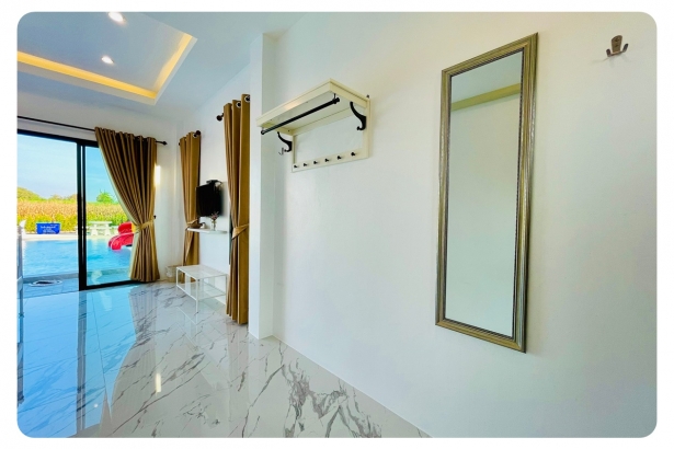 - วันเข้าพักเก็บค่าประกันบ้านพัก 3,000 บาท + บัตรประชาชน 1 ใบ (ได้คืนในวันเช็คเอ้าท์)